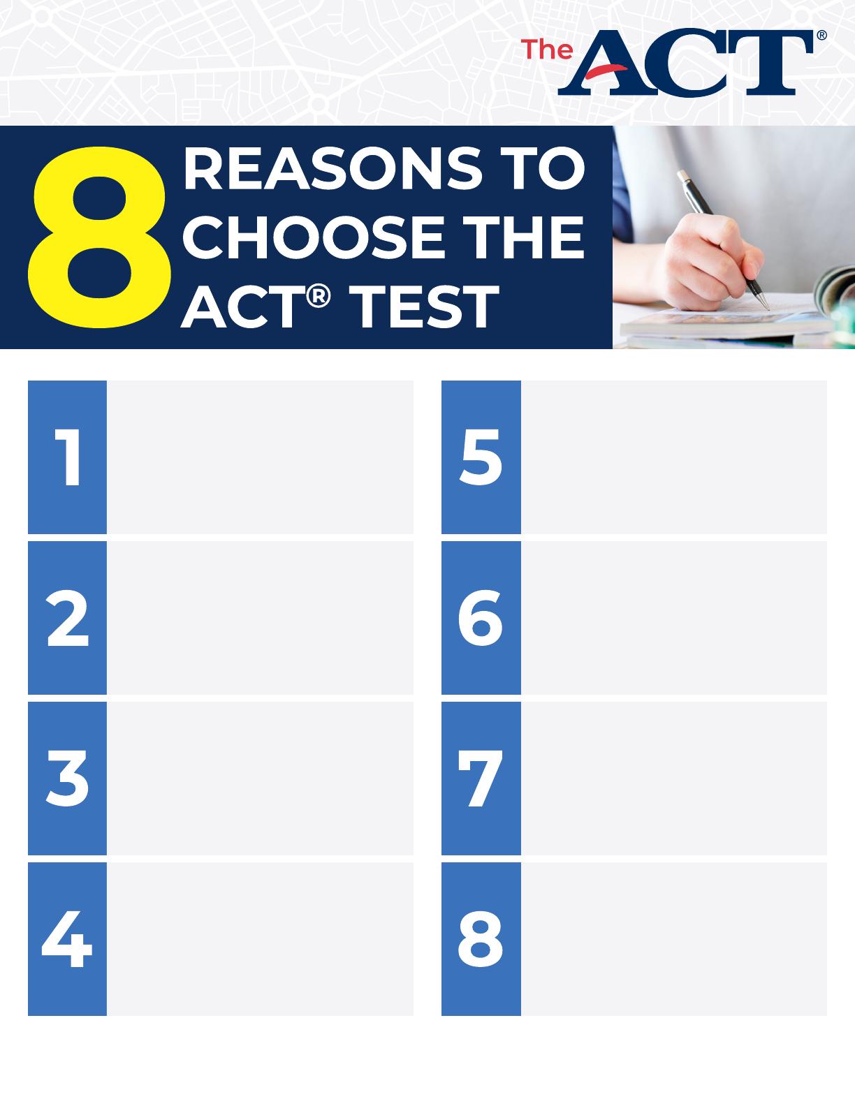 - Explains the benefits of choosing the ACT for college admissions over the SAT.