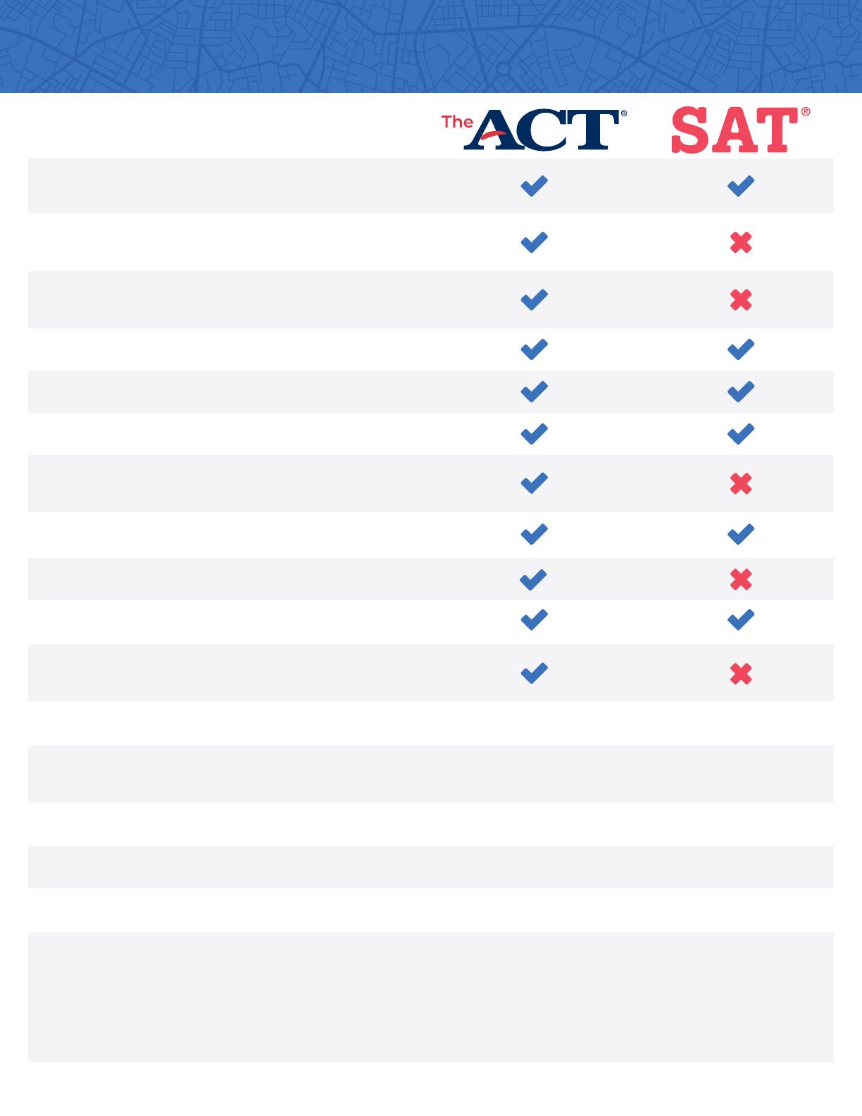- Describes the shorter testing times and fewer questions on the ACT compared to the SAT.