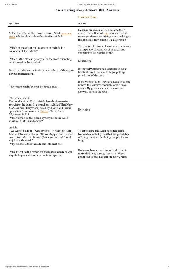 An Amazing Story Achieve 3000 Answers » Quizzma