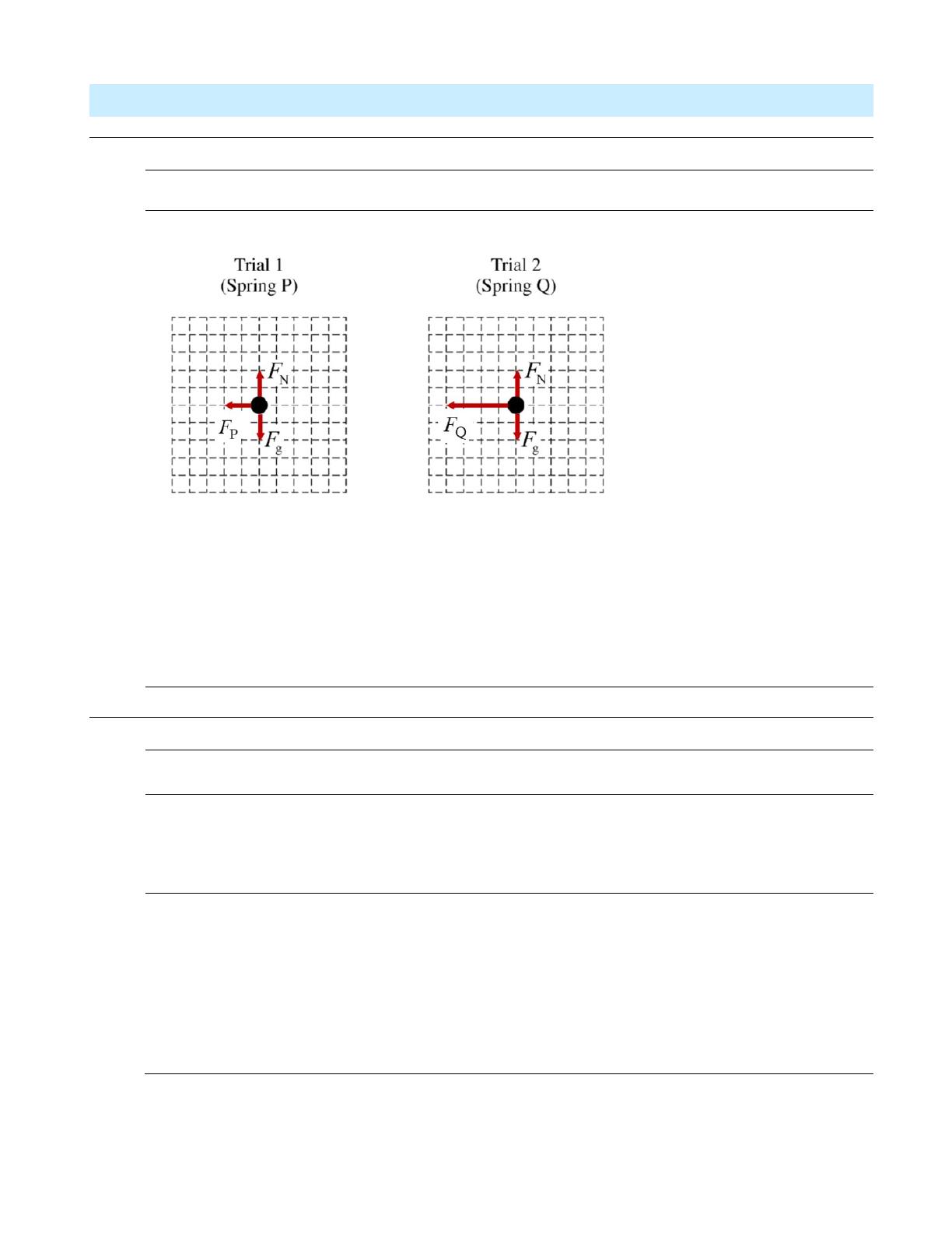 Spring Q (Trial 2) is twice as long as the force for Spring P (Trial 1)