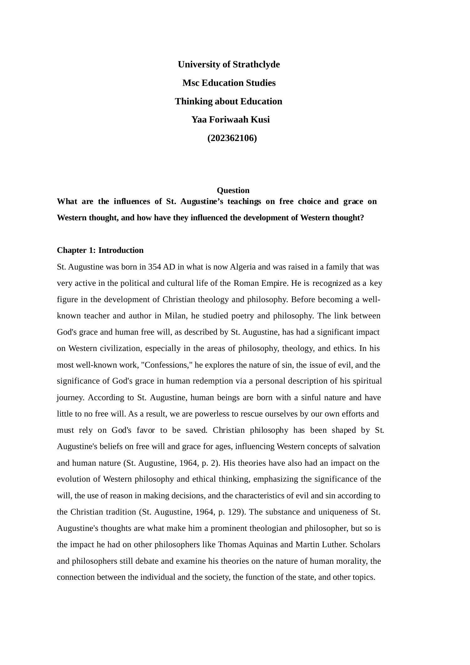 and human nature (St. Augustine, 1964, p. 2). His theories have also had an impact on the