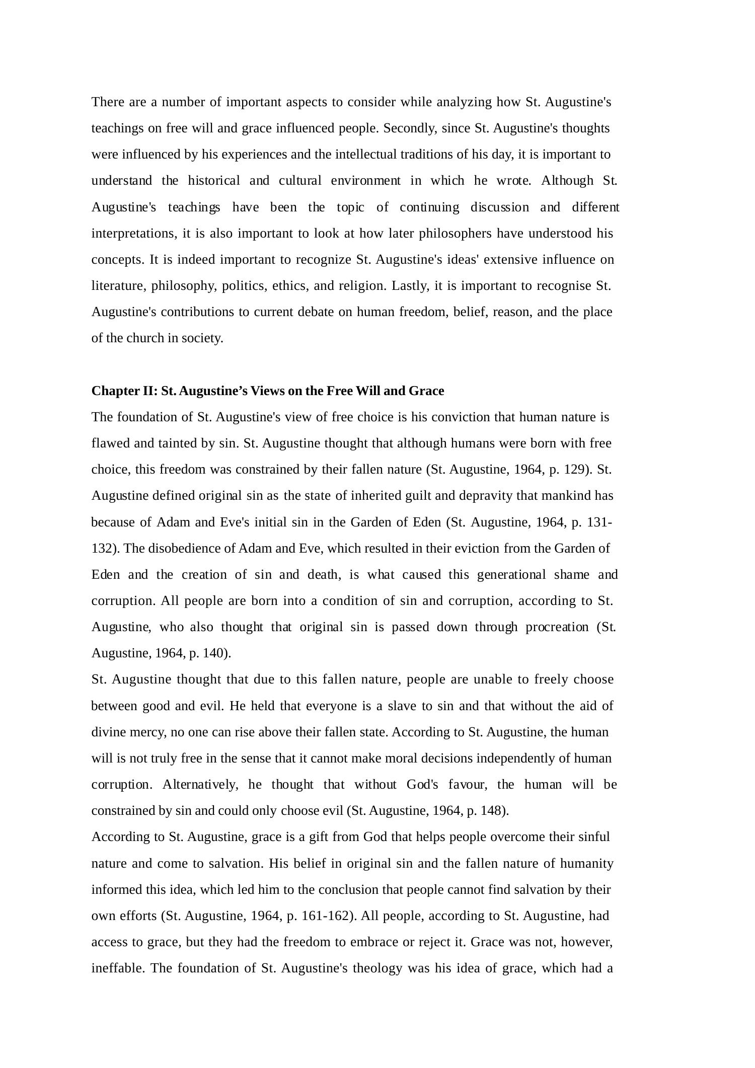 teachings on free will and grace influenced people. Secondly, since St. Augustine's thoughts