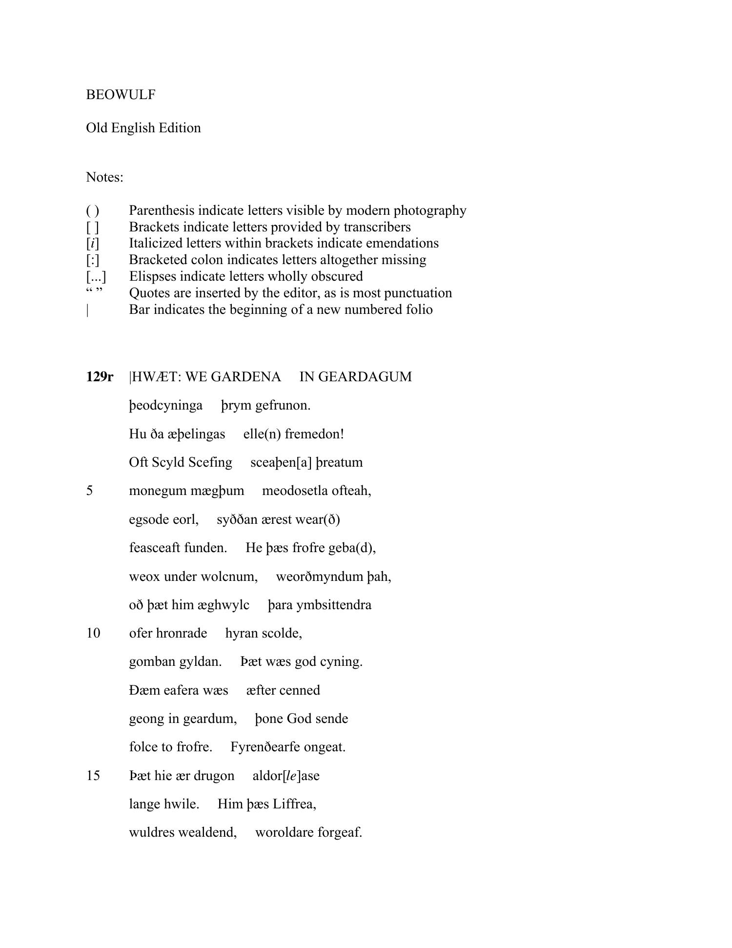 129r |HWÆT: WE GARDENA IN GEARDAGUM