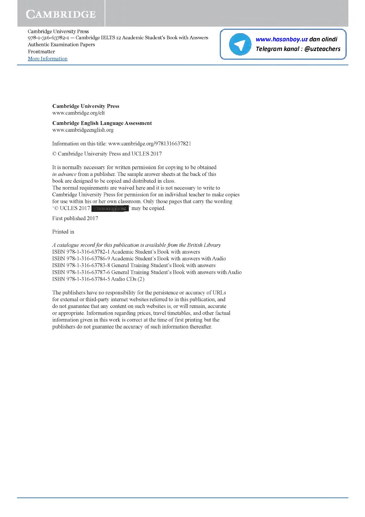 ISBN 978-1-316-63782-1 Academic Student’s Book with answers