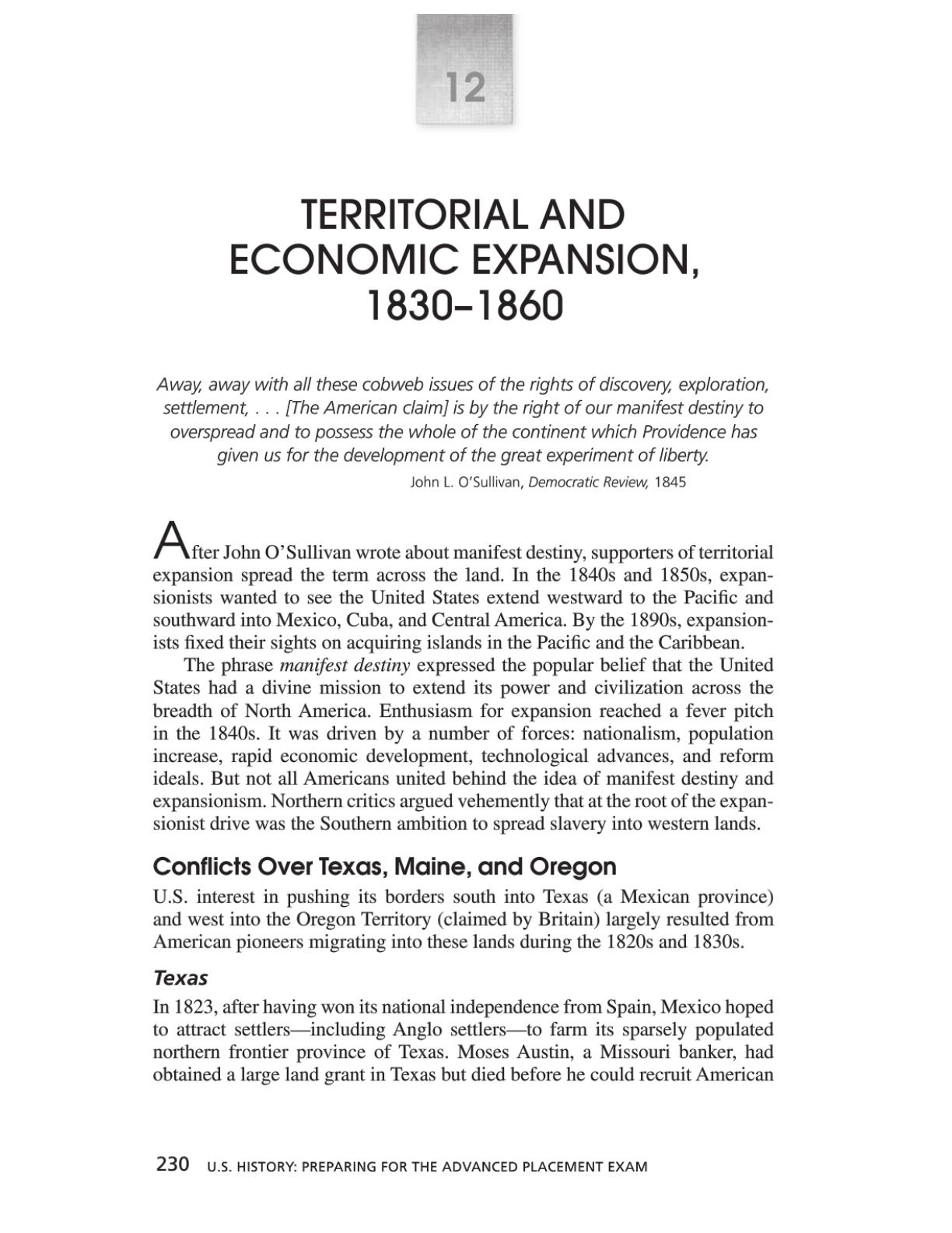 Chapter 12 Territorial and Economic Expansion, 1830-1860