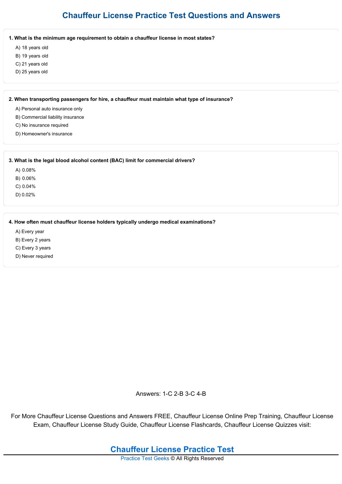 4. How often must chauffeur license holders typically undergo medical examinations?