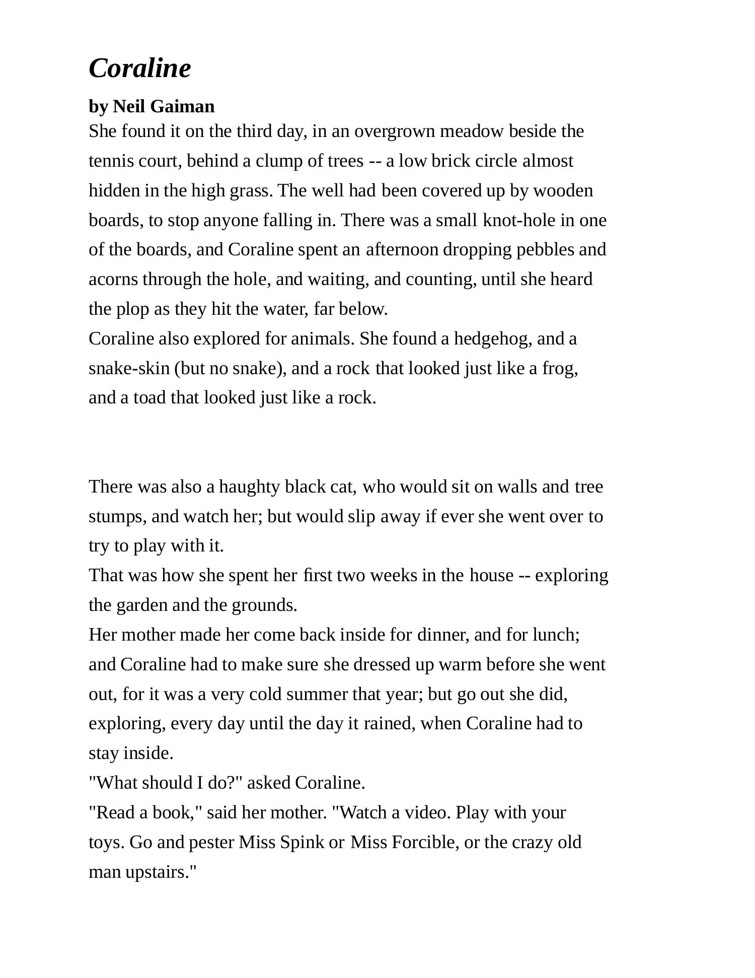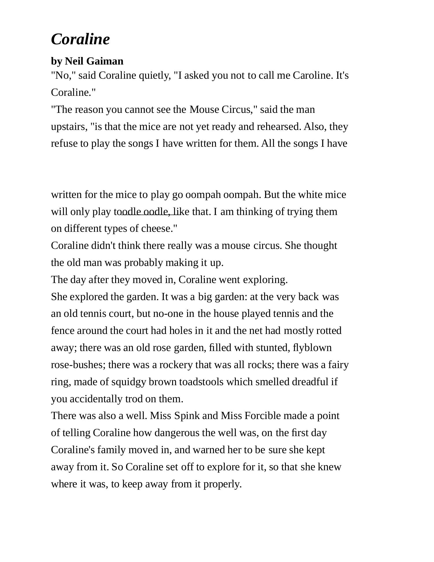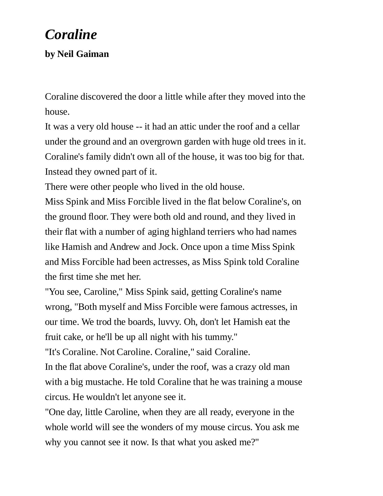 "No," said Coraline quietly, "I asked you not to call me Caroline. It's