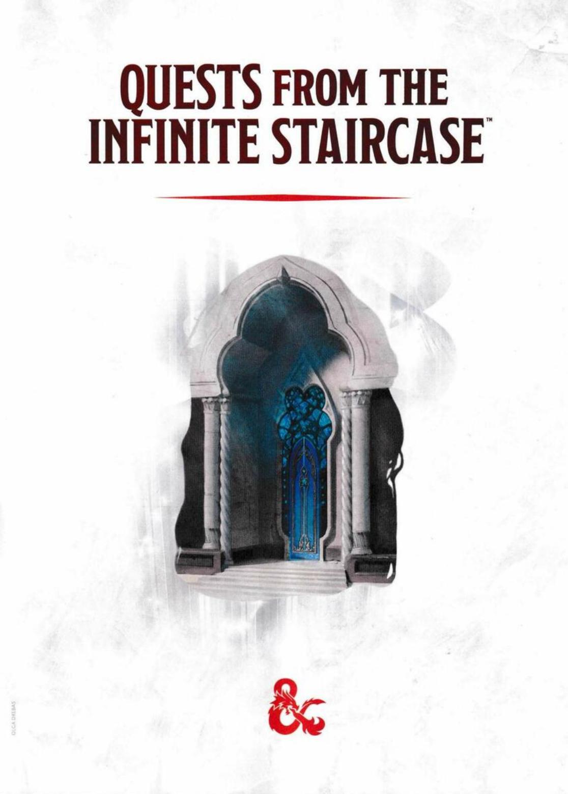 This document is a collection of Dungeons & Dragons 5th Edition quests titled ‘Quests from the Infinite Staircase’. It features contributions from notable authors including Jeremy Crawford and Makenzie De Armas, and includes various adventures set in the multiverse. The PDF is published by Wizards of the Coast and serves as a guide for players and dungeon masters looking to enhance their gaming experience.