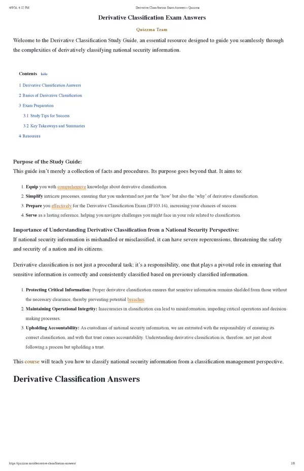 Welcome to the DerivativeClassificationStudy Guide, an essential resource designed to guide you seamlessly through