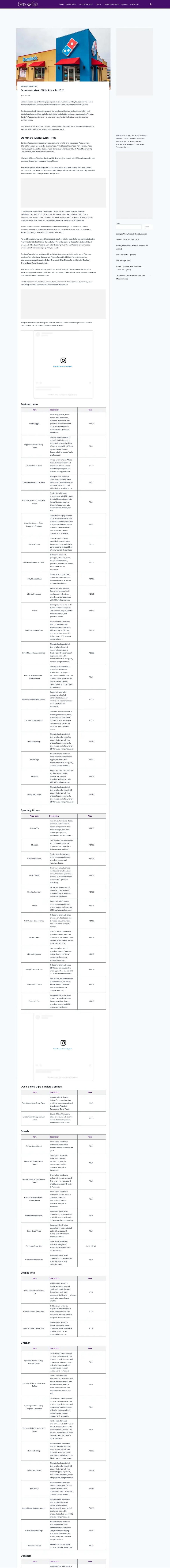 Domino’s 2024 Menu with Prices and Pictures PDF