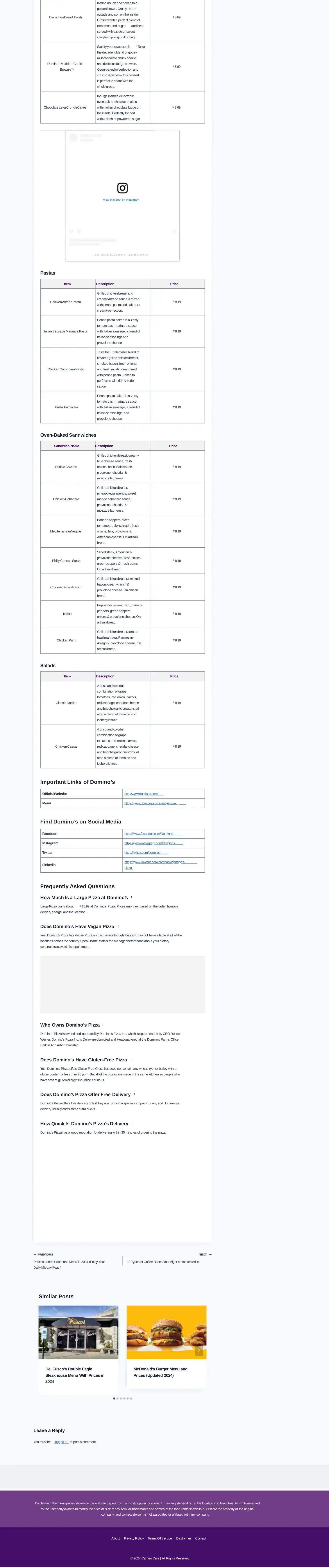 Domino’s Menu With Price in 2024