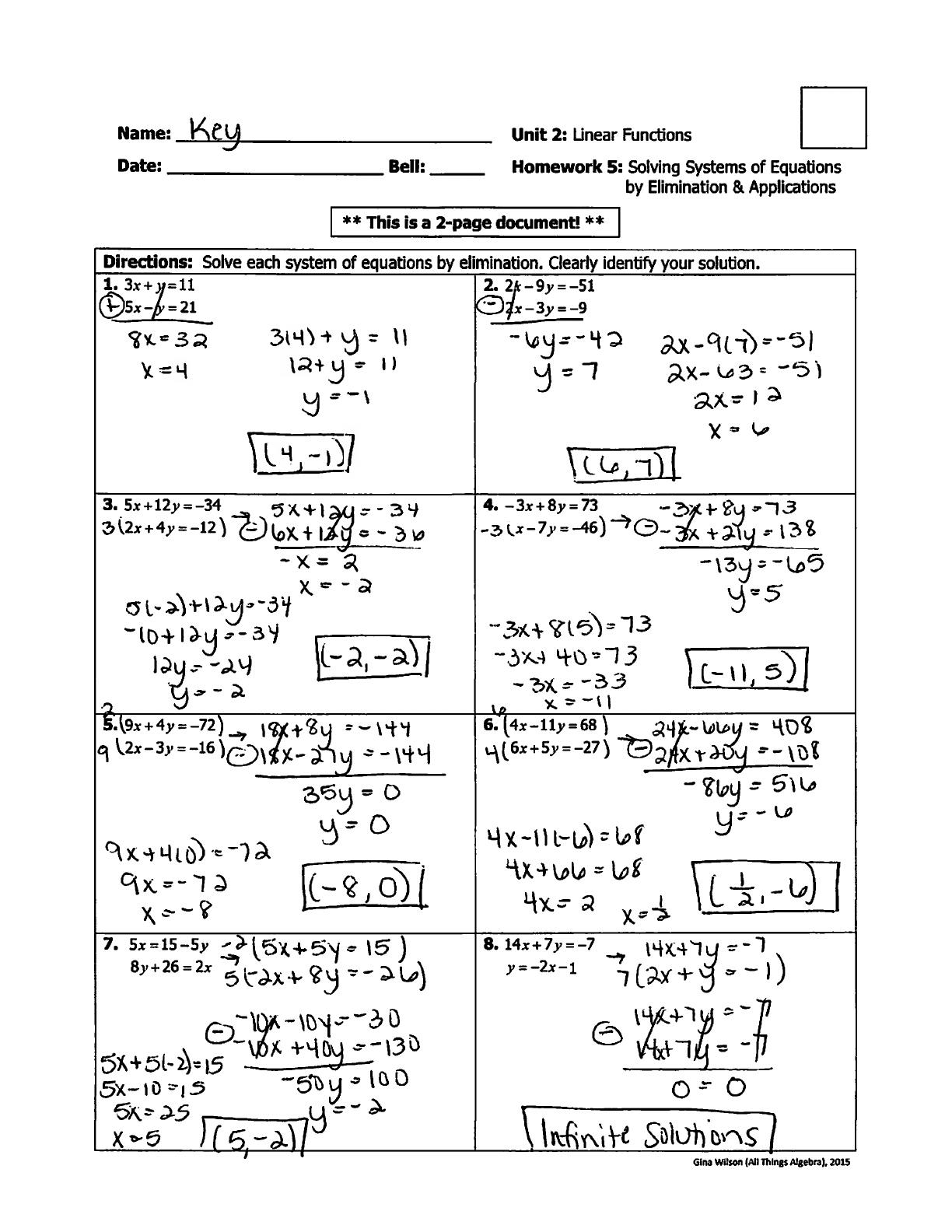 Gina Wilson's Algebra Unit 2 Homework 5 provides comprehensive solutions for solving systems of equations by elimination. This resource is essential for high school students mastering algebra concepts, particularly in preparation for exams. It includes step-by-step solutions for various problems, enhancing understanding of linear functions and equation manipulation. The homework key is designed to aid students in checking their work and reinforcing their learning. Ideal for teachers and students alike, this PDF serves as a valuable tool for improving algebraic skills.