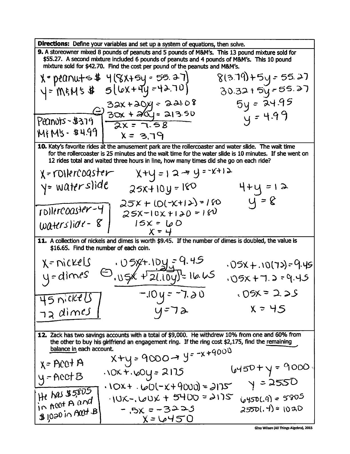 - Offers detailed solutions for systems of equations using elimination methods.