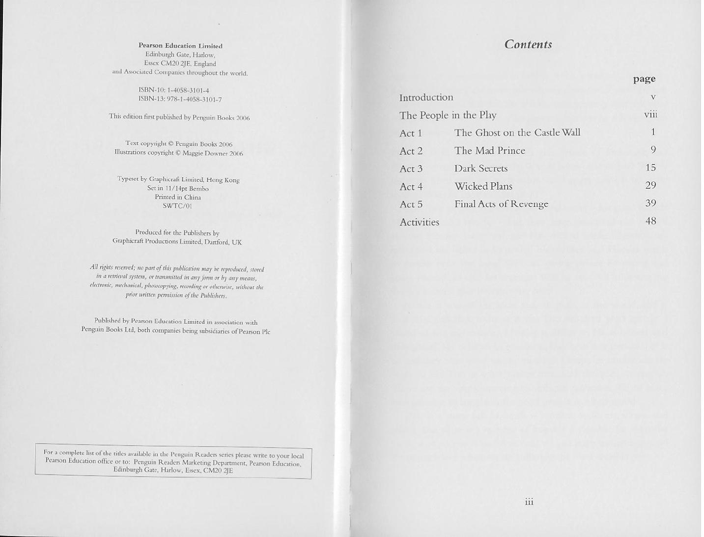 This document is a PDF version of ‘Hamlet’, a renowned play by William Shakespeare. It explores themes of revenge, madness, and moral corruption in the context of the Danish royal family. The play follows Prince Hamlet as he seeks to avenge his father’s murder by his uncle, Claudius, who has usurped the throne. The document includes a detailed summary of the plot, character analyses, and discussions of key themes and motifs. It is structured into acts and scenes, providing a clear breakdown of the narrative. Additionally, the document features activities and questions designed to enhance understanding and engagement with the text. Published by Pearson Education, this study guide is suitable for students and readers looking to deepen their comprehension of Shakespeare’s work.