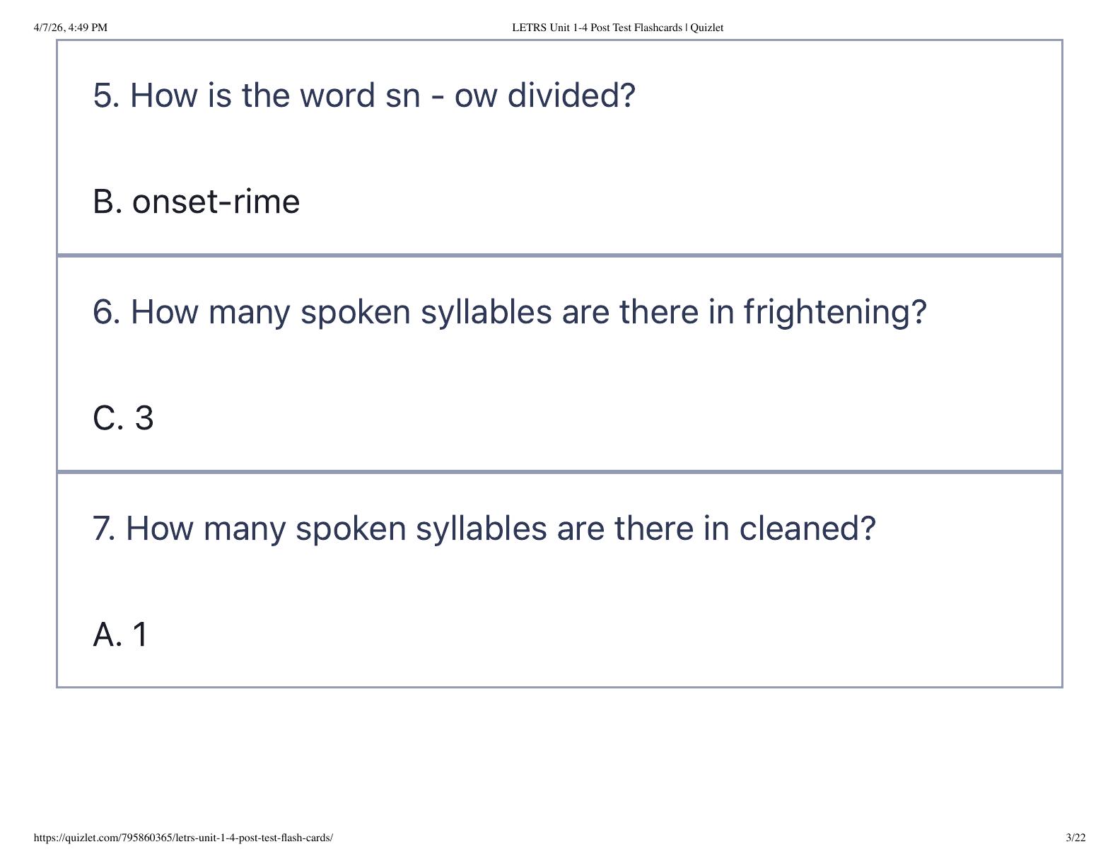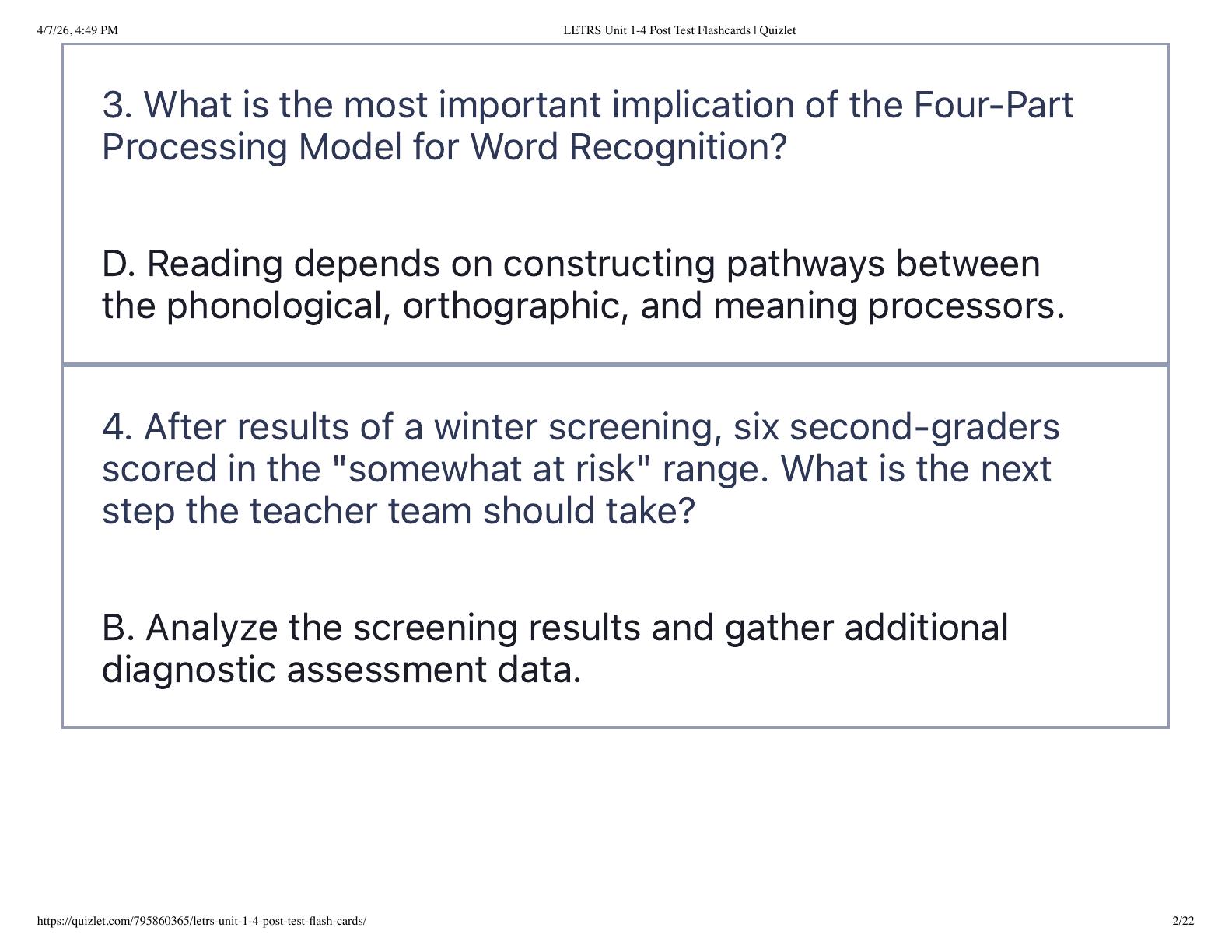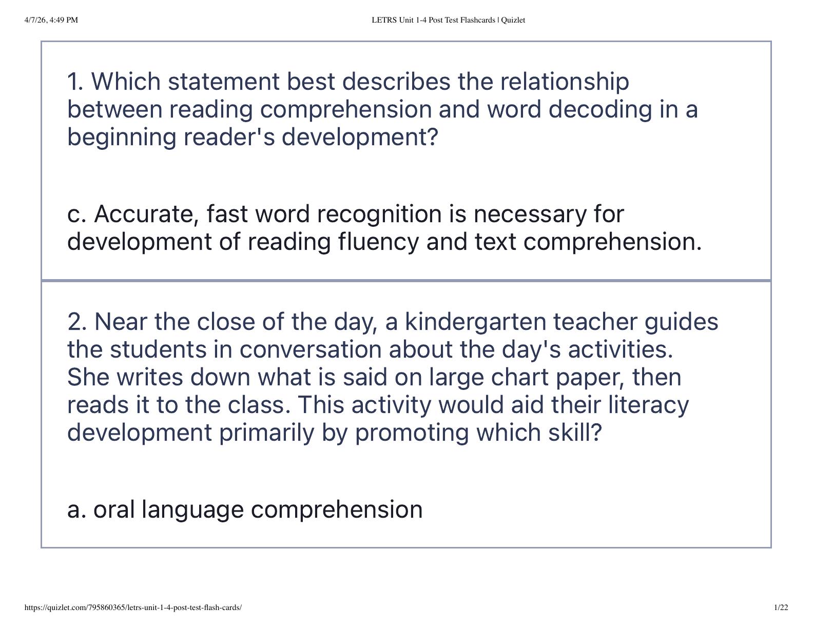 LETRS Unit 1-4 Post Test Flashcards | Quizlet