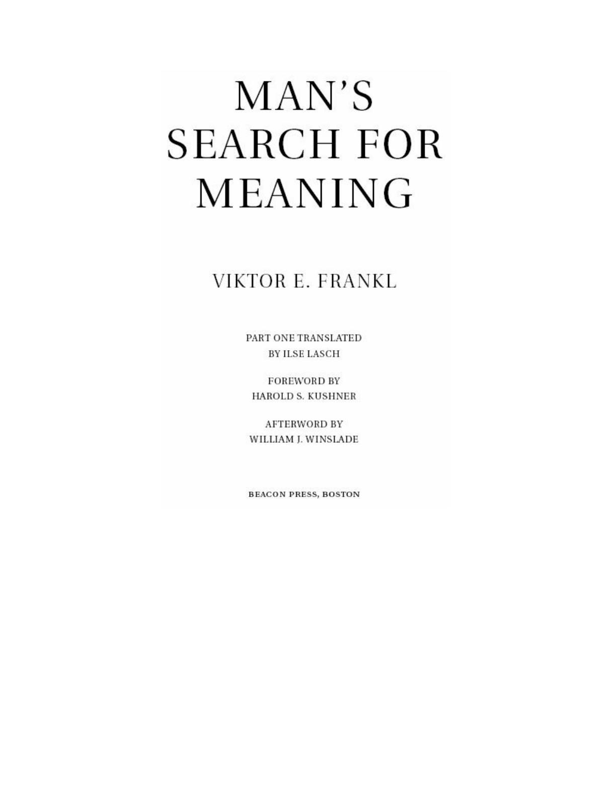 Viktor Frankl’s Man’s Search for Meaning (1946) argues that human beings are driven by a need to find meaning, even in the most horrific suffering. Based on his Holocaust survival, Frankl details three psychological phases of inmates—shock, apathy, and disillusionment—and introduces logotherapy, a method focused on finding purpose in life, love, and work.