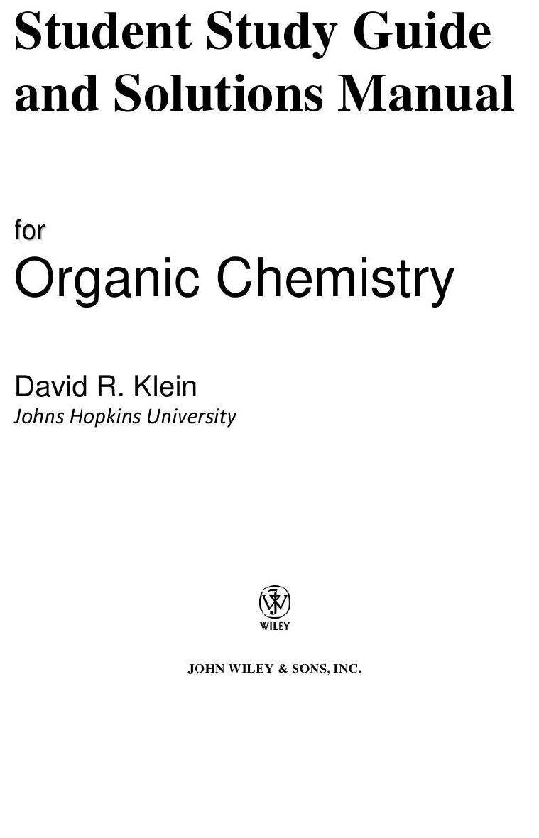 This document is a comprehensive student study guide and solutions manual for Organic Chemistry authored by David Klein. It serves as an essential resource for students seeking to enhance their understanding of organic chemistry concepts. The guide includes detailed explanations of key topics, problem-solving strategies, and solutions to exercises commonly found in organic chemistry courses. The structure is designed to facilitate learning, with clear organization and accessible language. This manual is particularly useful for students preparing for exams or needing additional support with coursework. Published by Wiley, it reflects the latest educational standards in the field of chemistry. The document is intended for undergraduate students and educators alike, providing a valuable tool for mastering organic chemistry.