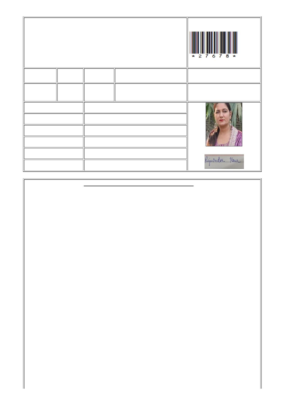 Name of the Candidate RAJWINDER KAUR