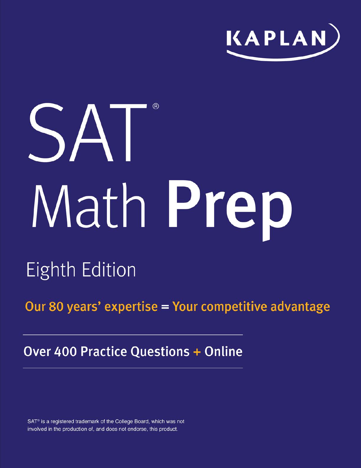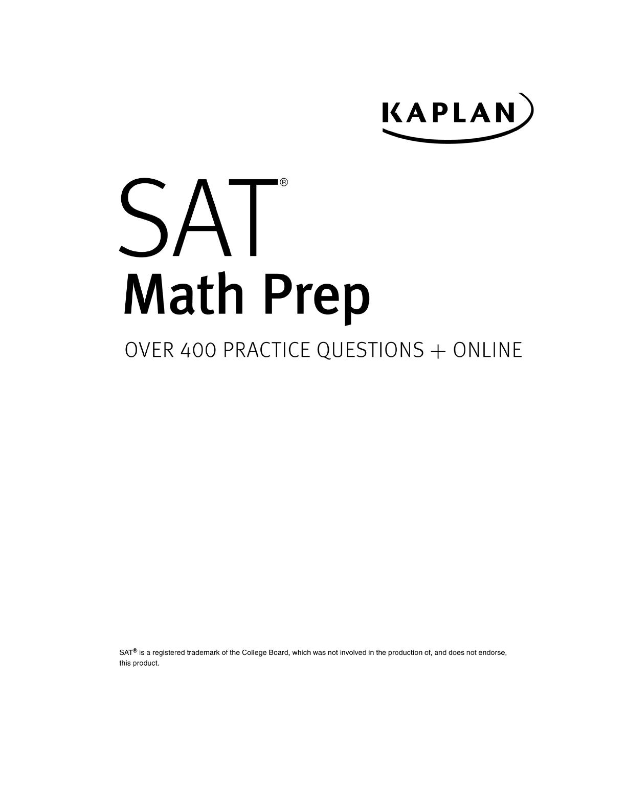 SAT Math Prep Eighth Edition by Kaplan provides comprehensive strategies for mastering SAT math concepts. This guide covers essential topics such as linear equations, systems of equations, inequalities, and functions, along with practice sets for each chapter. Ideal for high school students preparing for the SAT, this edition includes detailed explanations and practice problems to enhance problem-solving skills. With a focus on real-world applications and statistical analysis, students will gain the confidence needed to excel on the math section of the SAT exam.