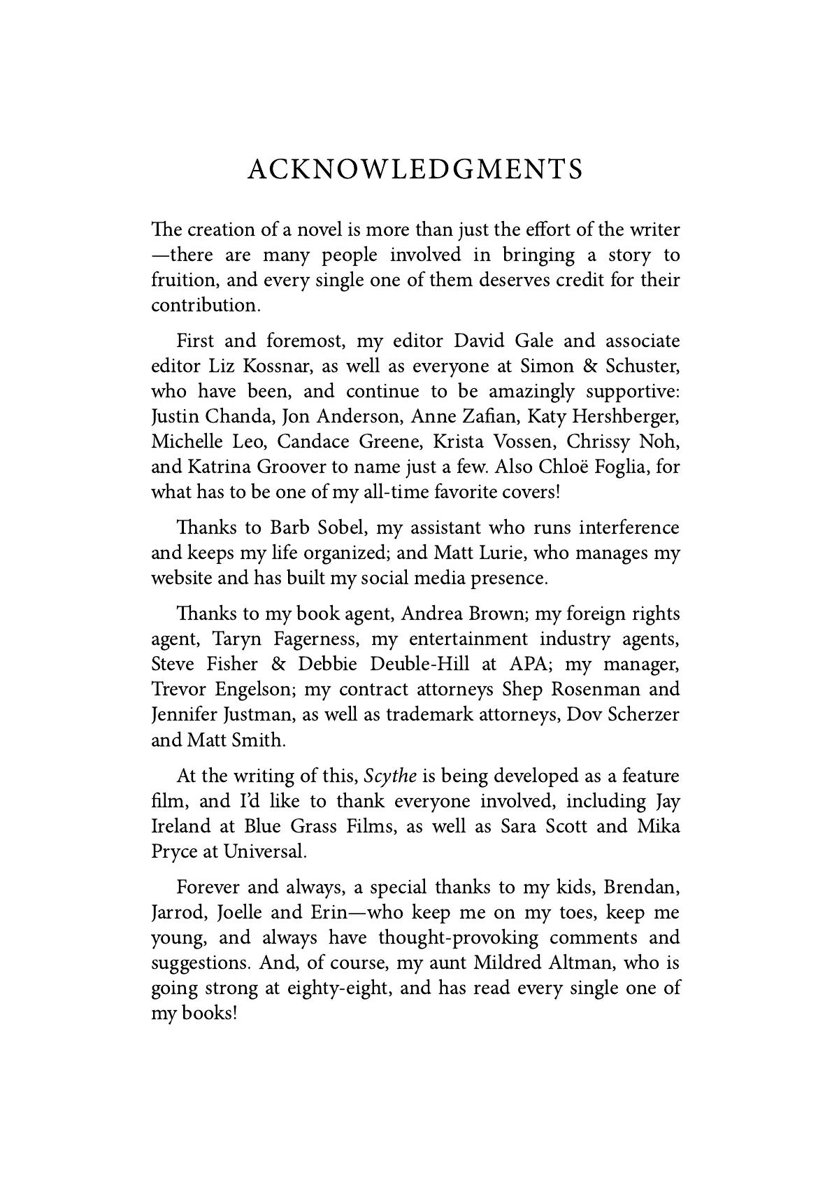 suggestions. And, of course, my aunt Mildred Altman, who is