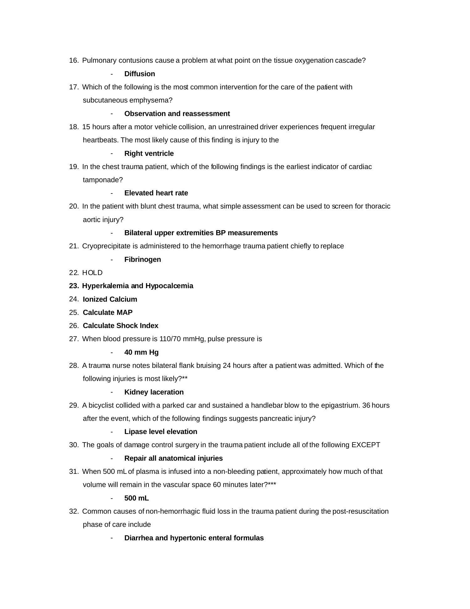 13. Trauma resuscitation is considered complete when hemorrhage is controlled, the patient has