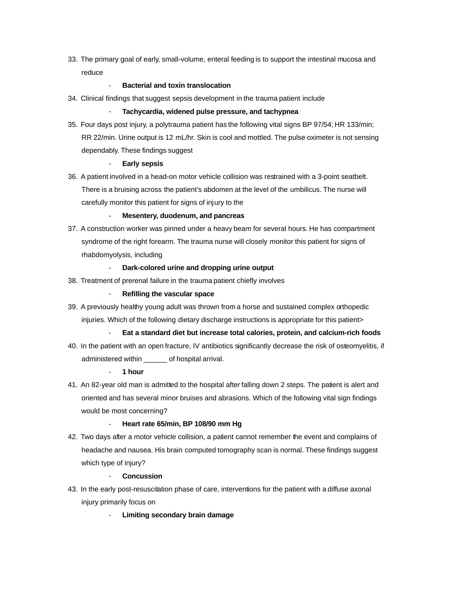 43. In the early post-resuscitation phase of care, interventions for the patient with a diffuse axonal