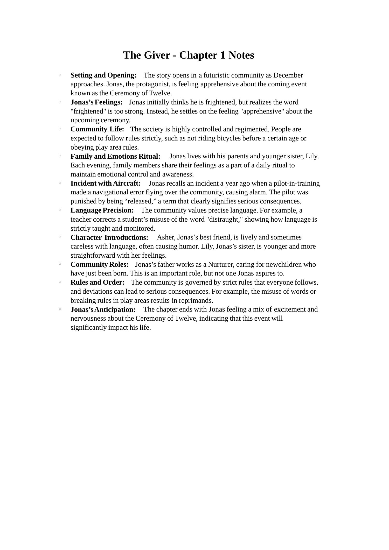 The Giver - Chapter 1 Notes