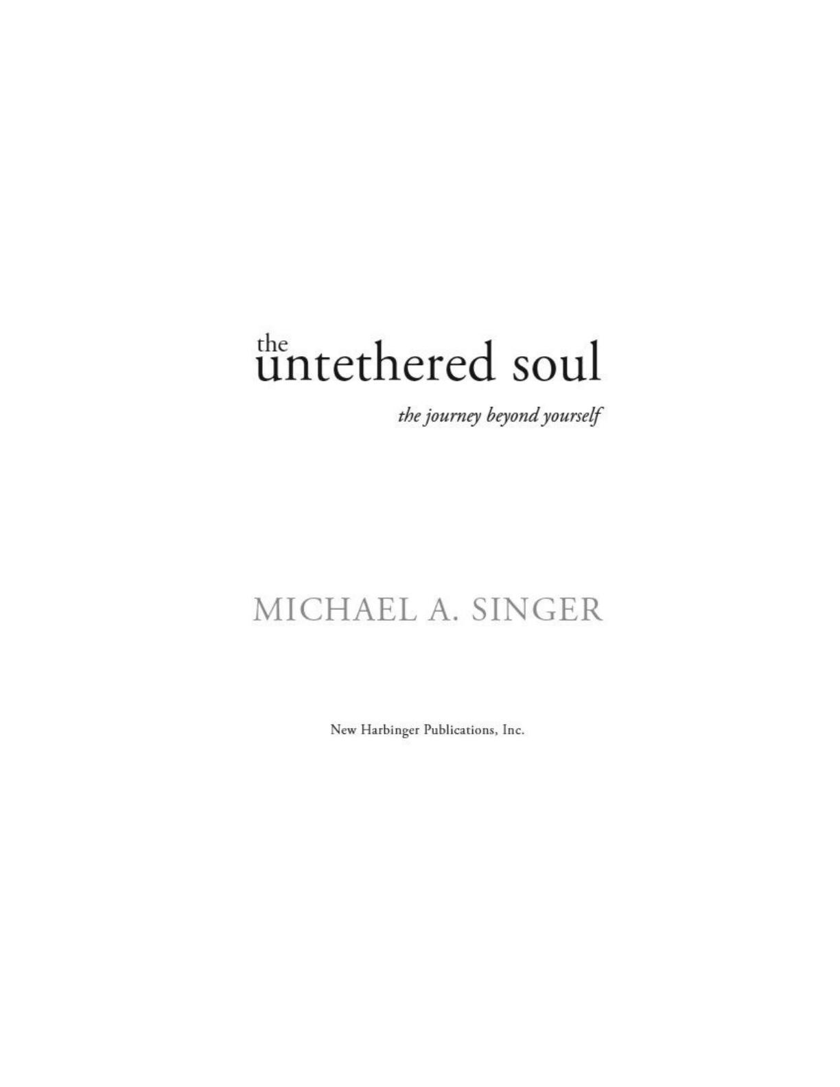 The document is a PDF version of ‘The Untethered Soul: The Journey Beyond Yourself’ by Michael A. Singer, published by New Harbinger Publications. This book explores the concept of self and consciousness, guiding readers on a journey of self-discovery and inner peace. It delves into the nature of thoughts, emotions, and the inner voice that often distracts us from our true essence. The structure of the book is divided into several parts, including awakening consciousness, experiencing energy, and living life fully. Key topics include the importance of letting go, understanding inner energy, and transcending personal limitations. Singer emphasizes the need for openness and acceptance in order to achieve true happiness and spiritual growth. This insightful guide is suitable for anyone seeking personal transformation and a deeper understanding of their inner self.