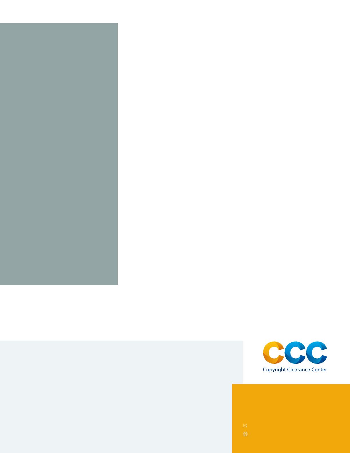 A pioneer in voluntary collective licensing, Copyright Clearance Center (CCC) helps