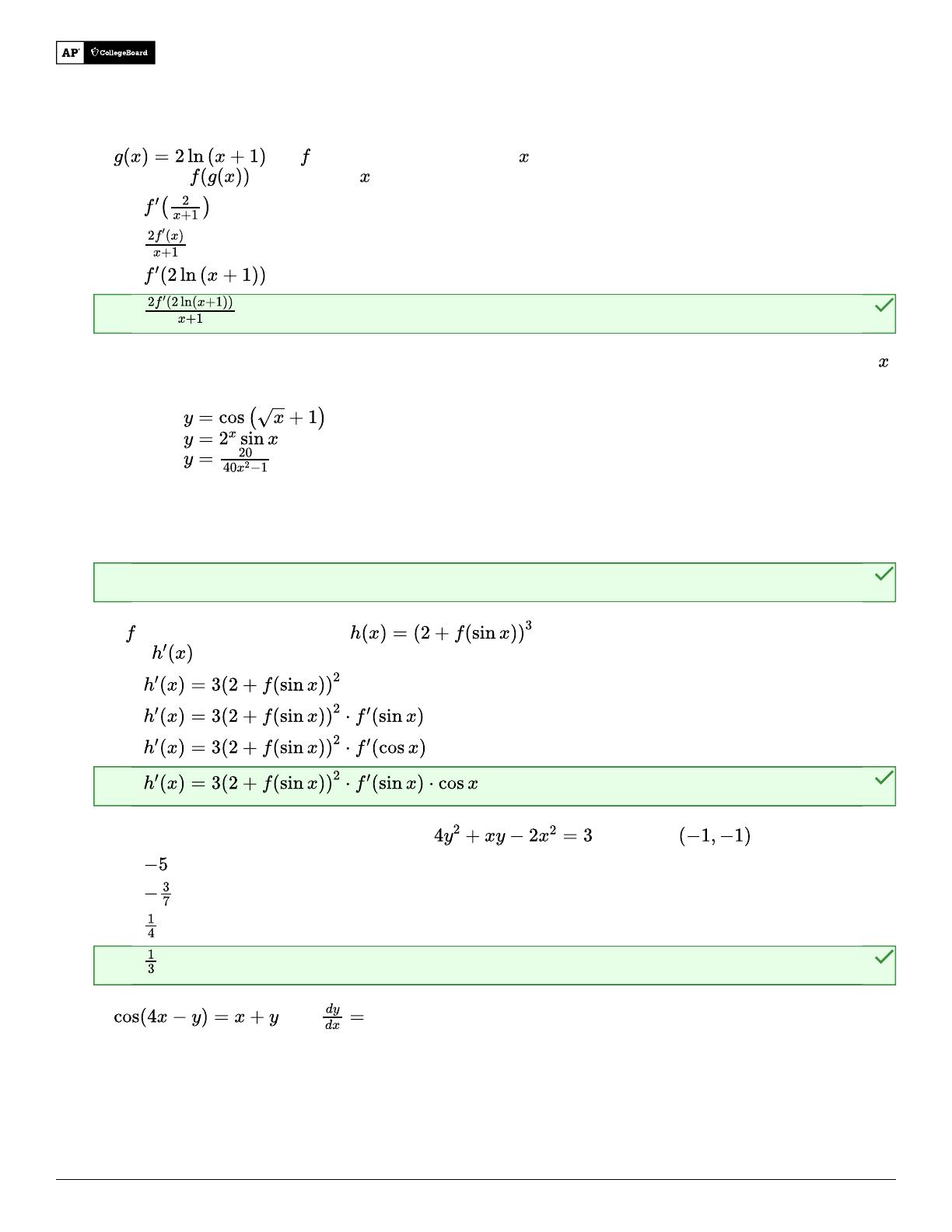 For which of the following functions is the chain rule an appropriate method to find the derivative with respect to