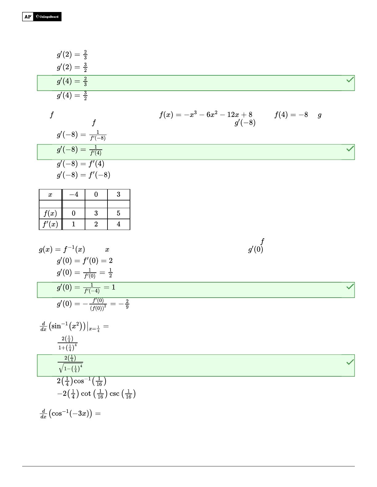The table above gives selected values for a differentiable and increasing function and its derivative. If