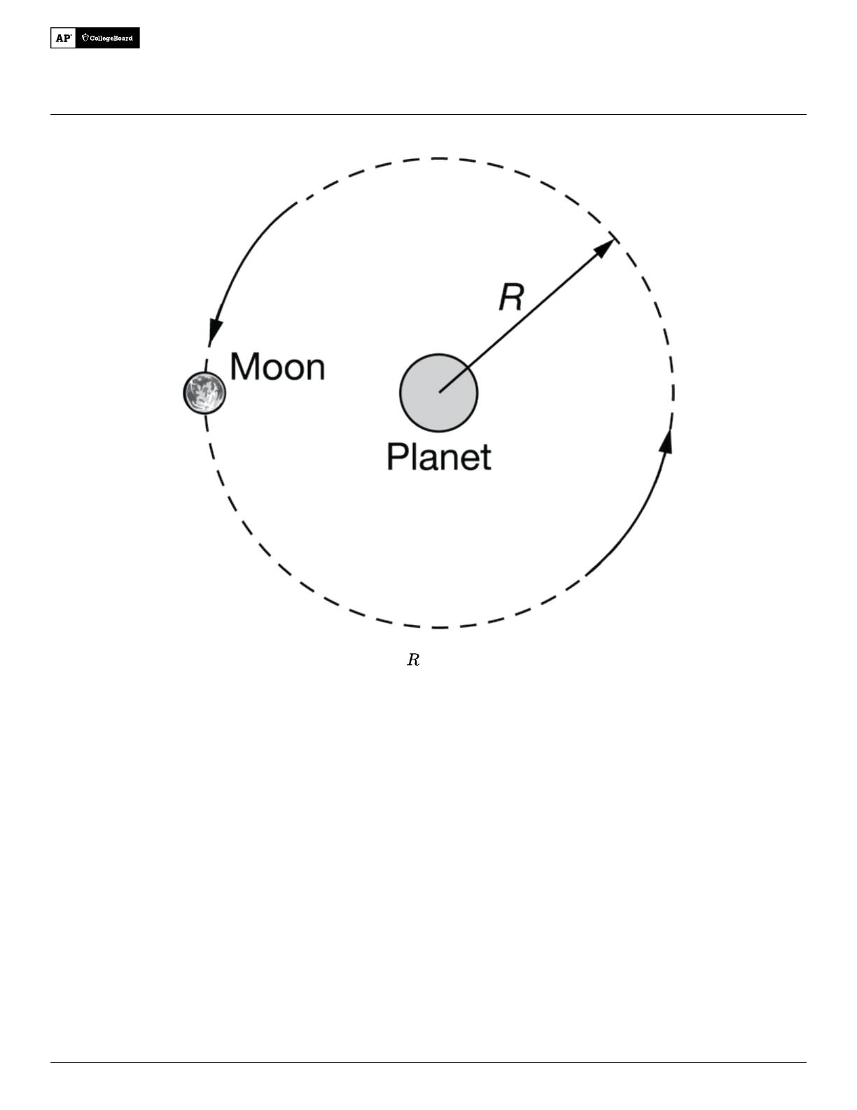 A moon orbits a planet in a nearly circular orbit of radius , as shown in the figure.